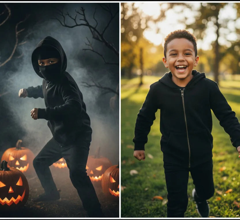 La solución 2 en 1 que transforma a tu hijo en un ninja audaz y lo mantiene abrigado en todas sus aventuras.